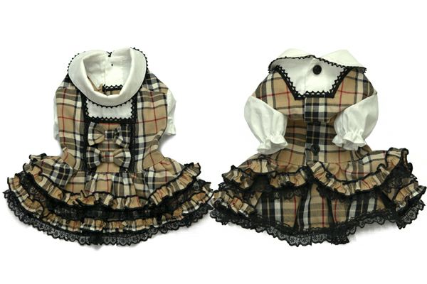 (予約販売)レースフリルワンピース[キャメルチェック] | 犬服通販ドッグピース