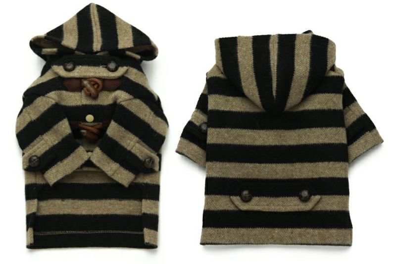 (予約販売)ウールニットボーダー・ダッフルコート[ブラウン] | 犬服通販ドッグピース