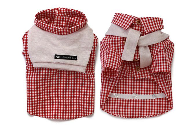 (予約販売)プロデューサー巻きチェックシャツ2[レッド]【マッチング対応】 | 犬服通販ドッグピース