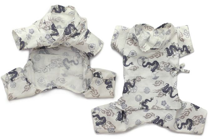 (予約販売)ワンタッチ甚平龍[ホワイト] | 犬服通販ドッグピース