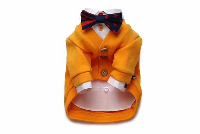 蝶ネクタイ付きブラウス・ニットカーディガンアンサンブル[オレンジ] | 犬服通販ドッグピース