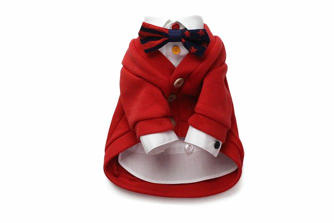 蝶ネクタイ付きブラウス・ニットカーディガンアンサンブル[レッド] | 犬服通販ドッグピース