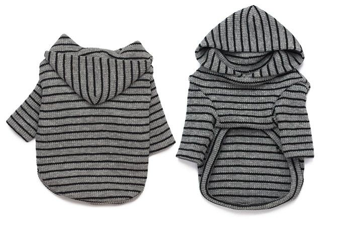 ベーシック長袖ワッフルボーダーパーカー(グレー)【販売終了商品】 | 犬服通販ドッグピース