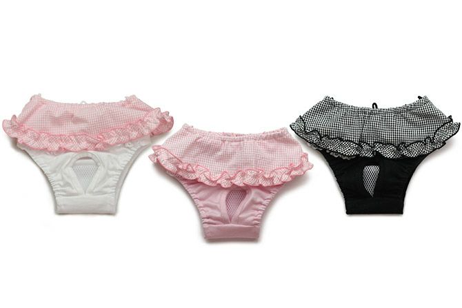 【販売終了商品】ピンクプリエ・スカート付フリルチェックマナーパンツ | 犬服通販ドッグピース