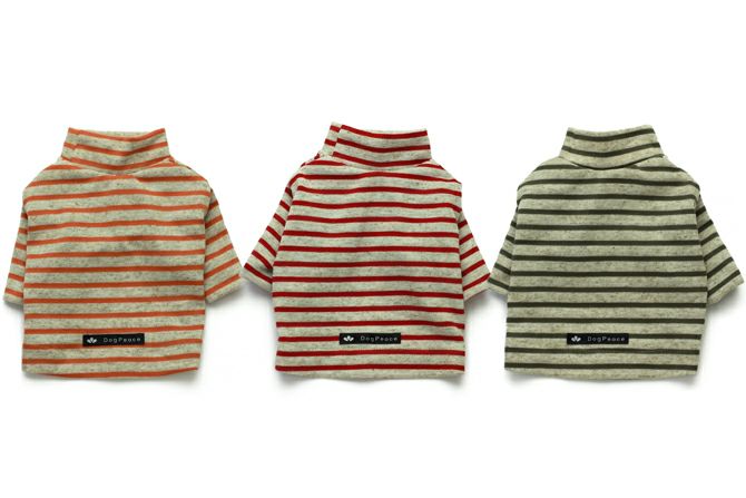 コットンボーダー長袖タートルネックシャツ【マッチングスタイル対応】 | 犬服通販ドッグピース
