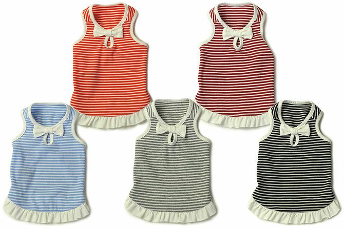 【販売終了商品】細ピッチボーダーフリルリボンキャミソール【マッチングスタイル対応】 | 犬服通販ドッグピース