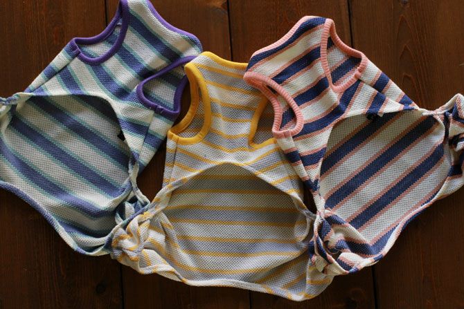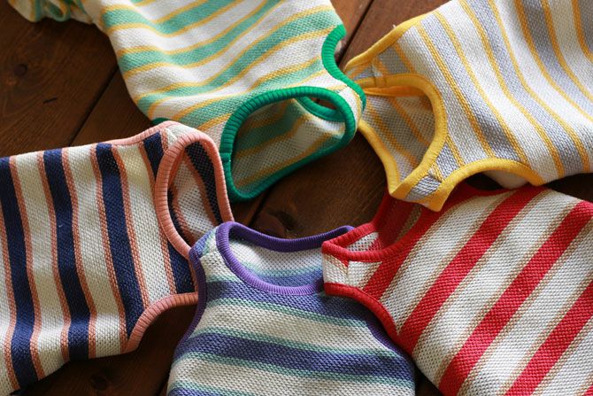 鹿の子編みマルチボーダーロンパース