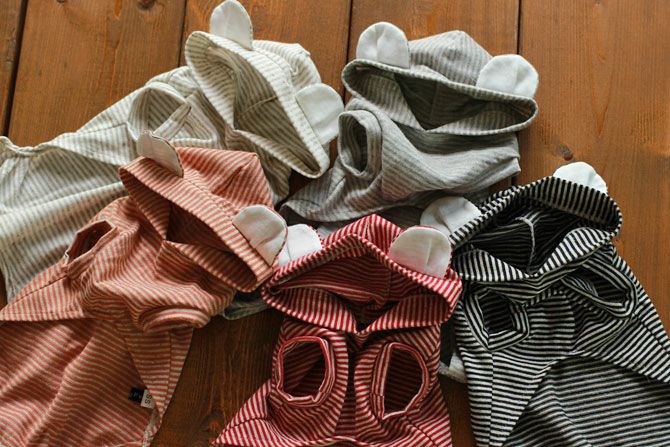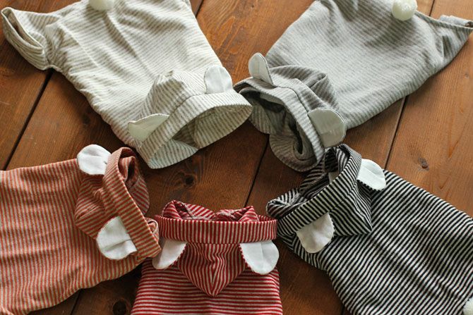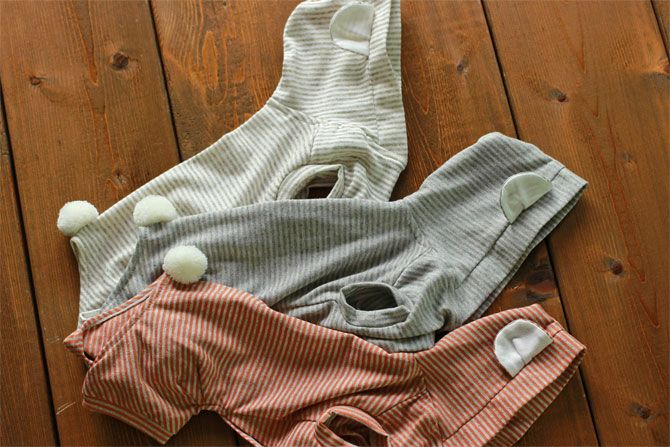 細ピッチ天竺ボーダーくまみみカバーオール【販売終了商品】