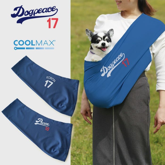 クールMAXドビー織りドッグスリングのブルーに、ベースボールロゴか背番号を入れてお届けします クールMAX®素材を使用した、軽くて涼しいドッグスリングです。通気性がよく蒸れにくいので、真夏のおでかけもさらっと快適。やわらかなドビー織りでしっかりしたホールド感がありながら、驚くほど軽量で持ち運びもラクラクです。