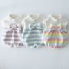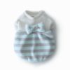 とっても手触りのいいボアフリースのボーダー生地で作った、冬のここぞというお出かけに着たいふんわりバルーンチュニック。素材やかたちだけでなく、色もふんわりとやさしいパステルカラーを選びました。背中の大きなリボンが着映えポイント。さらに胸元の、中央にパールカラーのビーズを置いた花モチーフのレースアクセントも、上品な印象を与えてくれます。女の子ワンちゃんの今年の冬を素敵にするためのマストな1着です。