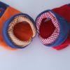 オレンジとレッド、ともに落ちついたネイビーと切り替えています。