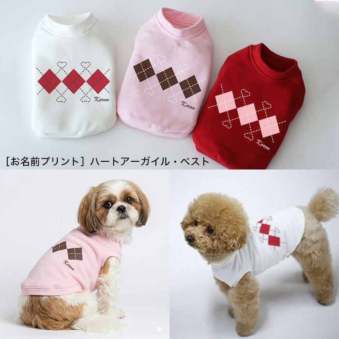[お名前プリント]ハートアーガイル・ベスト | 犬服通販ドッグピース