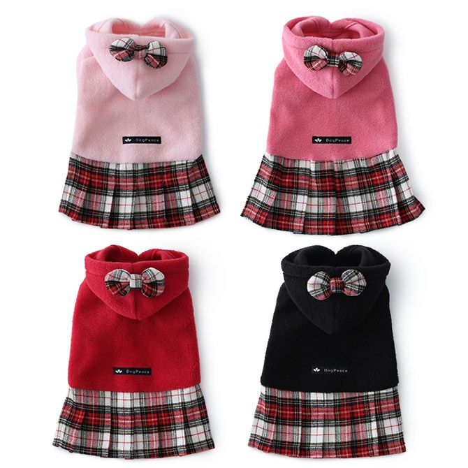 フリースタータンチェックリボンワンピース | 犬服通販ドッグピース