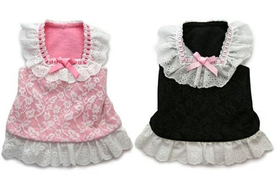ピンクDSSを購入しました。生地の伸びは、あまりありません。春のパーカー位の厚さです。ピンク地に白いレースで二重になっていて可愛いです。4cm幅の白い綿レースがアクセントで爽やかな感じです。首周りのレースにピンクのサテンリボンが良かったです。