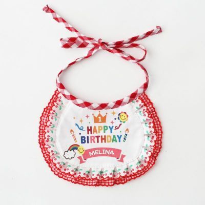 [お名前プリント]ハッピーバースデイ・ビブ(スタイ)・チェックフリルレッドのレビュー