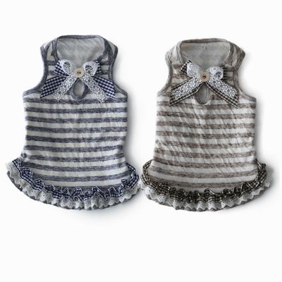シーズー犬6・2キロ 収縮性もあり MMサイズ購入マッチング無しこのままでOKでした ボーダーにフリフリ可愛いです