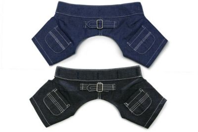 スタンダードのデニムでいいですね。 短足の我が家のダックスちゃんにはいい感じになると予測してます。大きめ購入なので成犬になってから履かせます(o^-')b !