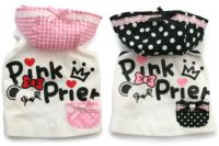 このタイプは、以前も色違いで2枚持っていてお気に入りでしたが、今の体重が2.3kgとなりSSサイズでこちらを今回購入しました。ピンクのチェックのフリルと白いレースが素敵です。生地も伸びるので着せやすい事と肩のリボンが目を引きますね。