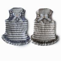 シーズー犬6・2キロ 収縮性もあり MMサイズ購入マッチング無しこのままでOKでした ボーダーにフリフリ可愛いです -
