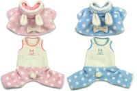 マルチーズの女の子にピンクとブルーを購入しました。16歳の老犬のため最近は、カバーオールの洋服ばかりです。柔らかい素材で肌触りがとてもいいです。伸縮もあって着やすいです。家の中では、フードが邪魔になっていました。これは、外出の時にすぐに着せられますのでとても便利ですね。うさ耳も梵天も可愛いです。一緒に2枚購入して良かったです。