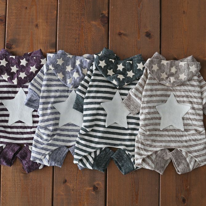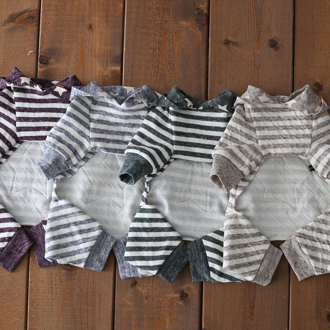 スターアップリケ・ダブルガーゼボーダーカバーオール