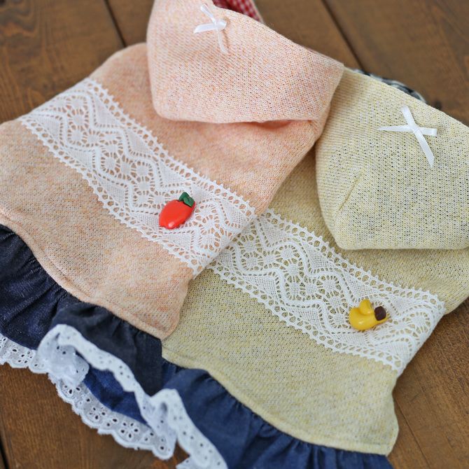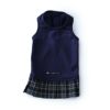畦編みニット・デニムギャザースカート付きレイヤードシャツ